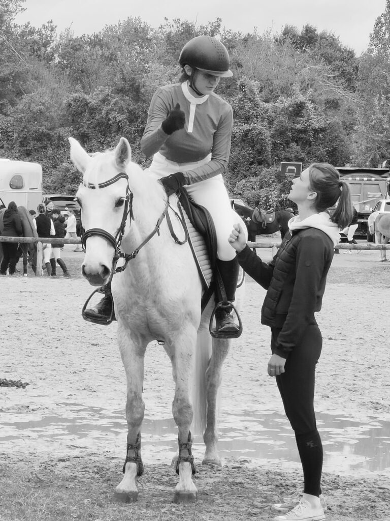 Passionnée par l’enseignement et la progression, j’accompagne chevaux et cavaliers, du travail quotidien au coaching concours, vers leurs objectifs!